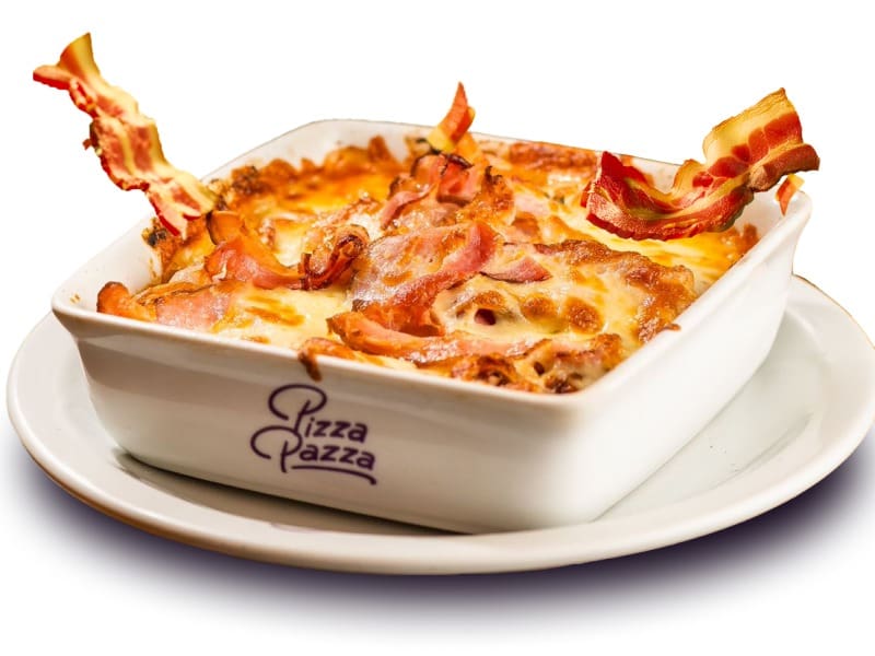 Massa tipo Spaghetti no ponto perfeito, com nosso delicioso molho à bolonhesa artesanal super caseiro, uma camada crocante de mussarela gratinada no forno a 300 graus e muuuuuito bacon super crocante para finalizar. Experimente essa novidade!