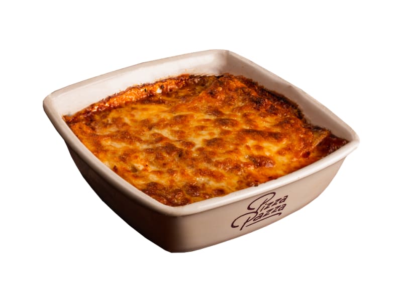 Massa artesanal para lasanha, frango desfiado, mussarela, requeijão cremoso e molho bolonhesa