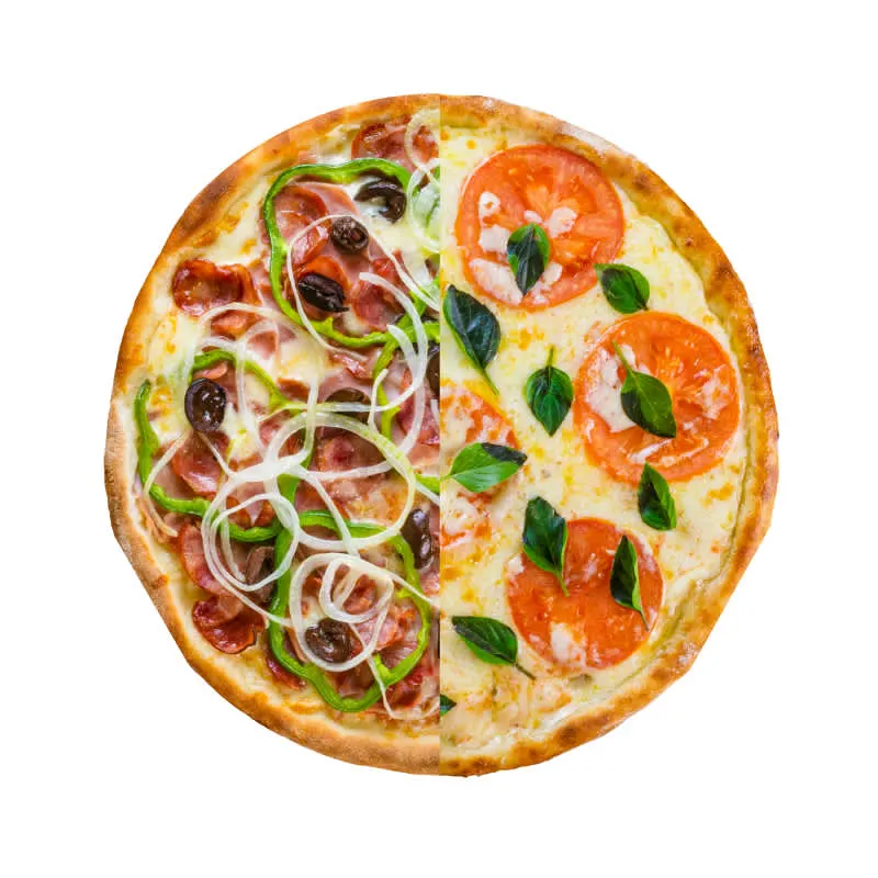 Escolha seus sabores preferidos. Pizza Média de 4 fatias - 25 cm.